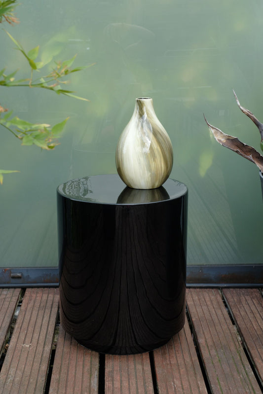 Sa surface lisse, presque miroir, capte la lumière et la restitue avec douceur, donnat aux objets un raffinement intemporel.